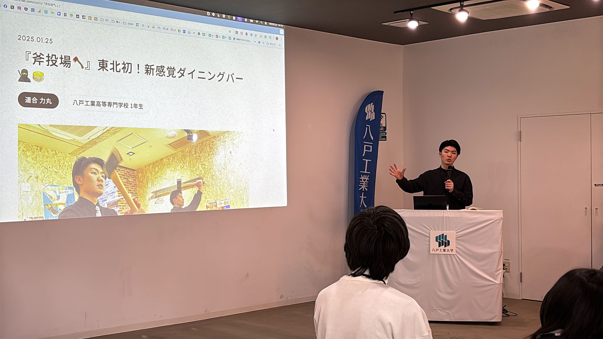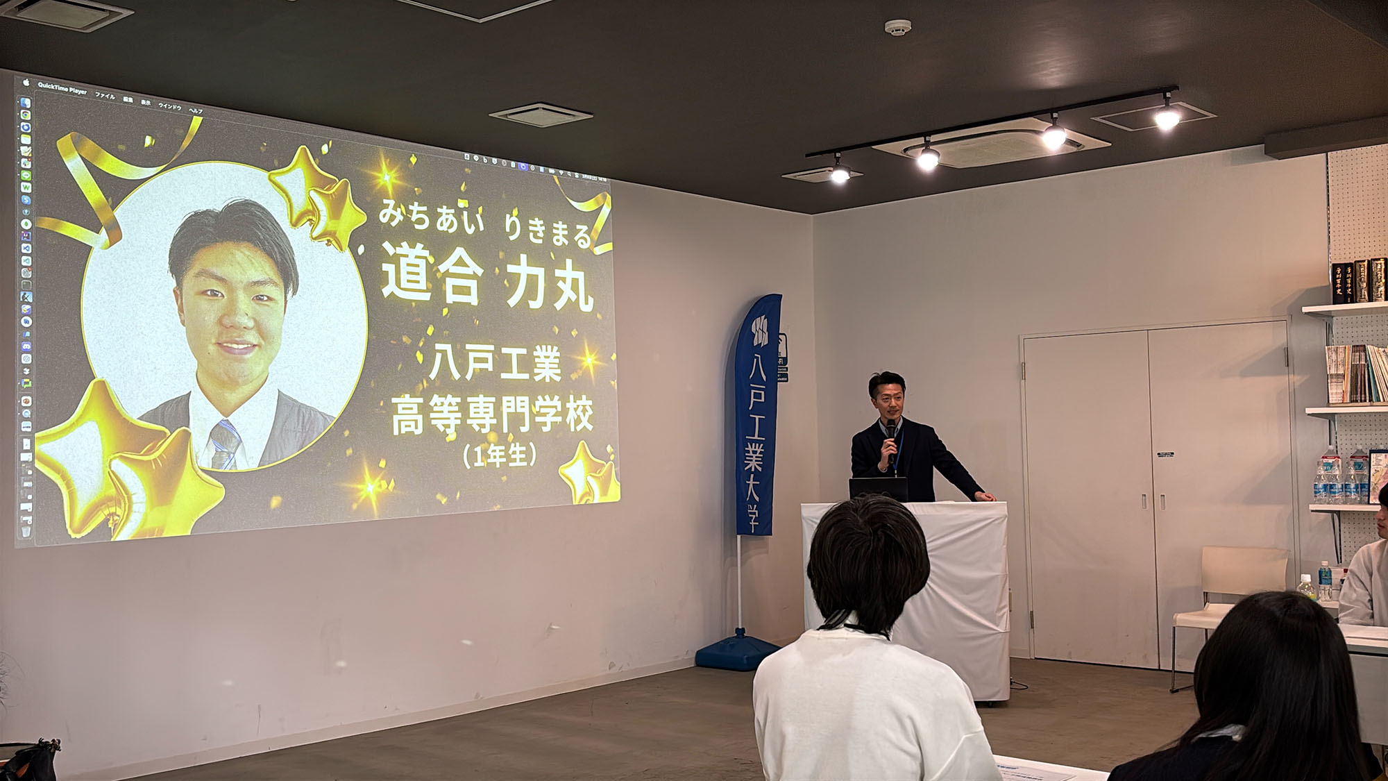続いての発表は、八戸工業高等専門学校 1年の道合 力丸(みちあい りきまる)くん!